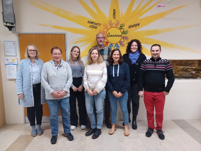 von links: Rektorin Gabriele Lindemann, Jürgen Keller, Caroline Albert, Carolin Geisert, Manuel Molicki, Beate Maier, Agnes Lobendank, Michael Linder
